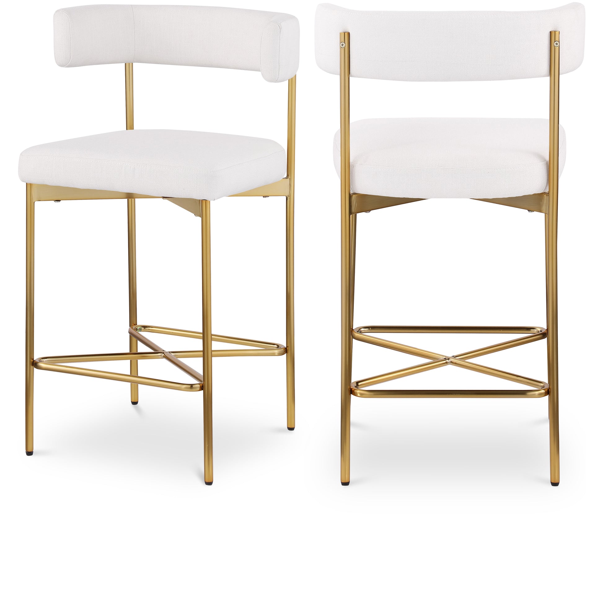 Apportez une touche simple mais élégante à votre salle à manger ou à votre bar avec ces tabourets de bar/comptoir en tissu texturé en lin Rivage. Ces tabourets sont recouverts d'un tissu luxueux à texture de lin qui est non seulement durable, mais ajoute également une touche d'élégance à n'importe quel espace. La structure en métal doré brossé ajoute à la longévité des tabourets et en fait un ajout intemporel à votre maison. Avec un dossier parfaitement courbé, ces tabourets offrent un confort ultime qui vous permettra de vous asseoir et de profiter de vos repas ou boissons en toute simplicité.