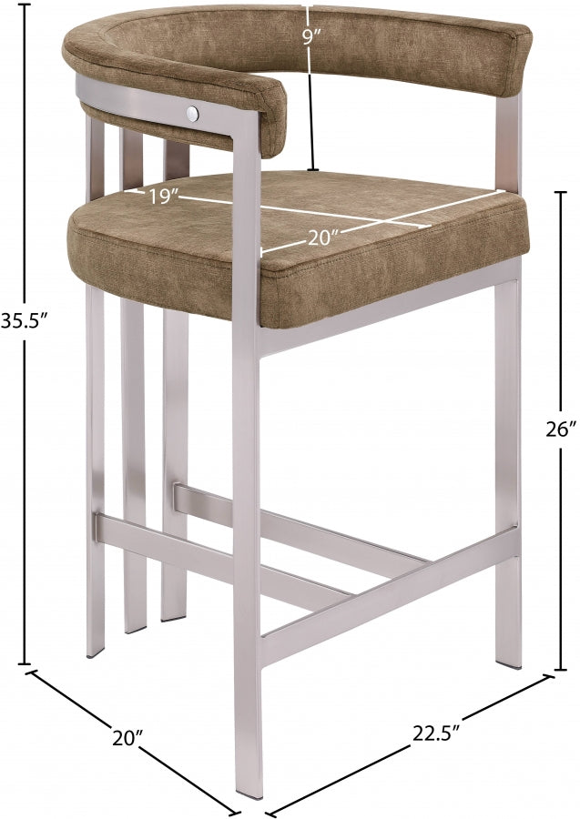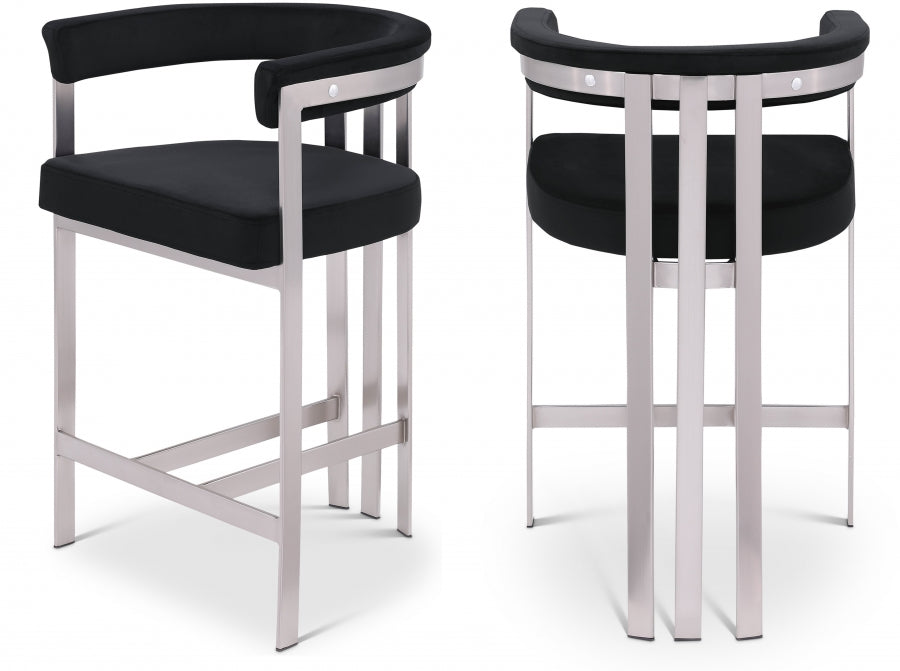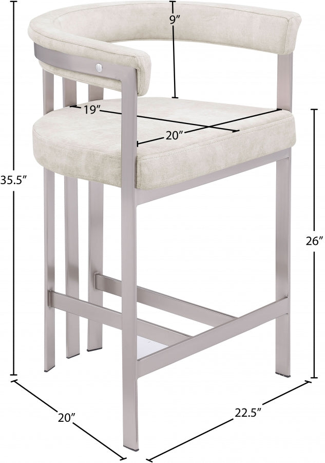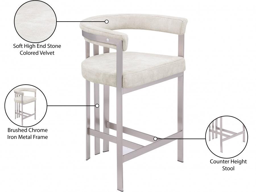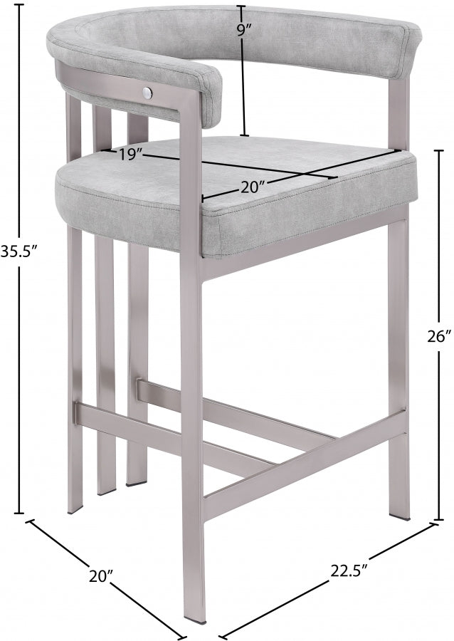 Transformez votre espace salle à manger en un havre contemporain avec ce tabouret de comptoir en velours Marcello. Son velours doux et haut de gamme est doux sur lequel vous pouvez vous asseoir, tandis que son cadre en fer chromé brossé assure une durabilité pour les années à venir. Son dossier incurvé offre un soutien lorsque vous êtes assis et savourez votre repas, afin que votre dos ne se fatigue pas ou ne vous fasse pas mal pendant que vous mangez. Son design incurvé et contemporain est parfait pour toute maison moderne.