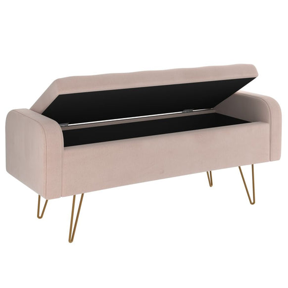 Pouf/banc de rangement Sabel en rose poudré avec pattes dorées vieillies
