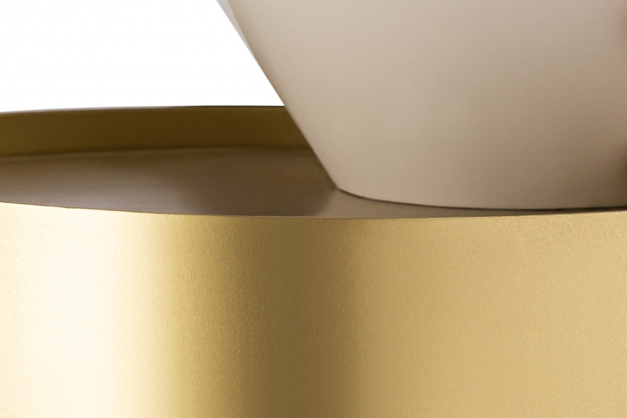 Apportez l'élégance! Cette table de bout Damon présente un design astucieux qui fait partie d'une sculpture et d'un ajout utile à votre salon. Le plateau en métal blanc repose sur la base en métal doré mat dans une combinaison légèrement contrastée qui ne manquera pas d'impressionner sous tous les angles. Bien qu'elle soit parfaite seule, cette belle pièce est également superbe lorsqu'elle est associée à la table basse Damon assortie pour plus de punch.